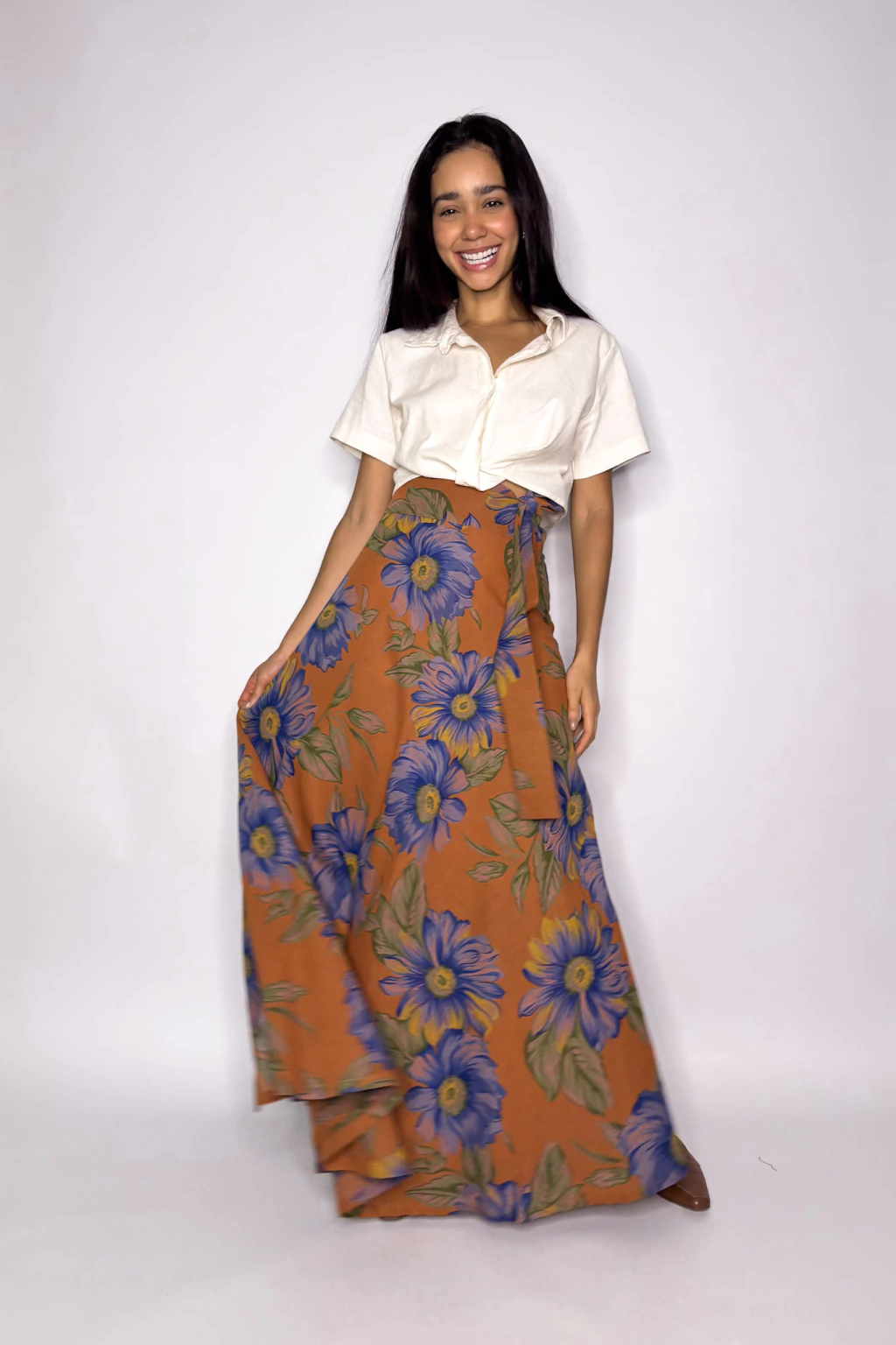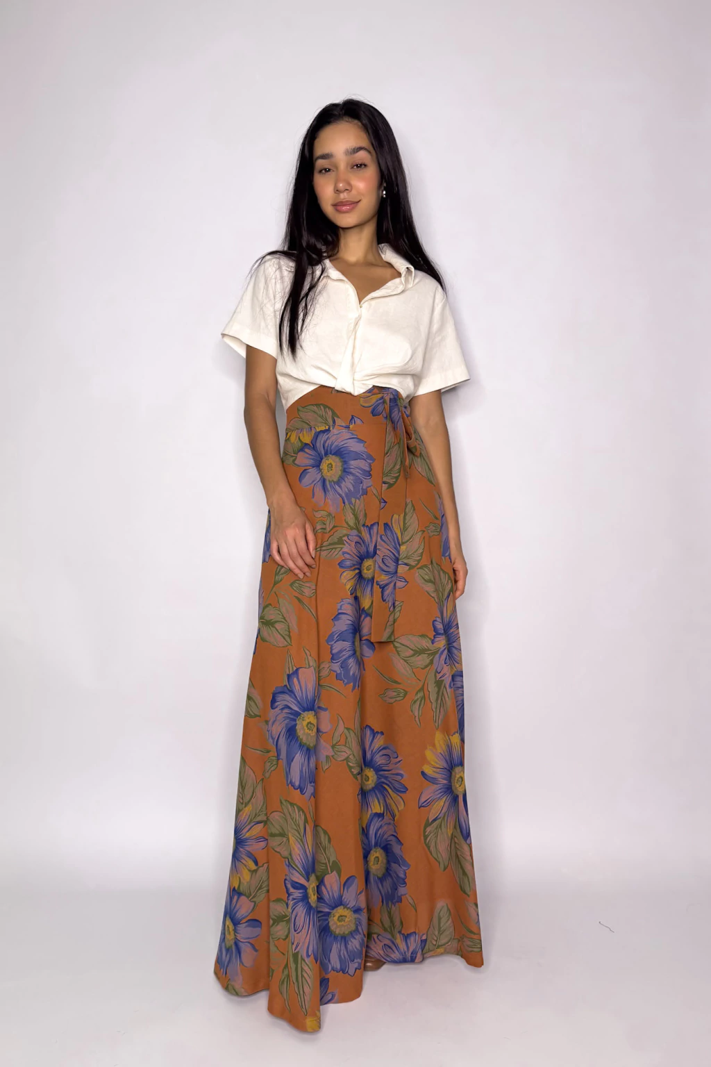 Saia longa godê envelope, uma peça versátil que se adapta ao seu estilo de diversas maneiras. Esta saia longa, com sua silhueta elegante e fluída, é perfeita para ocasiões especiais ou para um visual casual sofisticado.